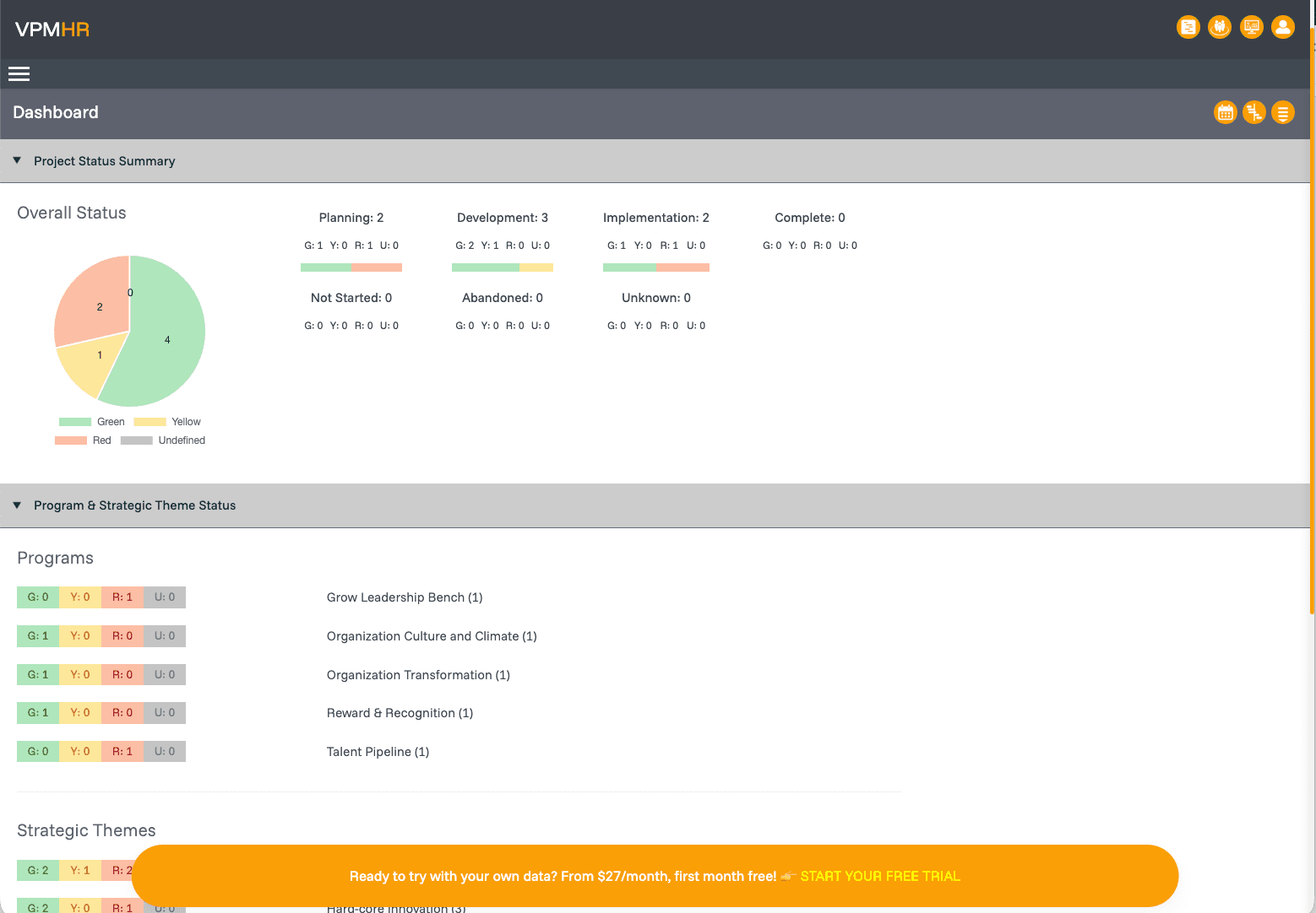 Let VPMHR handle the structure so you can focus on the work. Built-in governance, accountability tracking, and portfolio views mean less time assembling updates and more time delivering results.